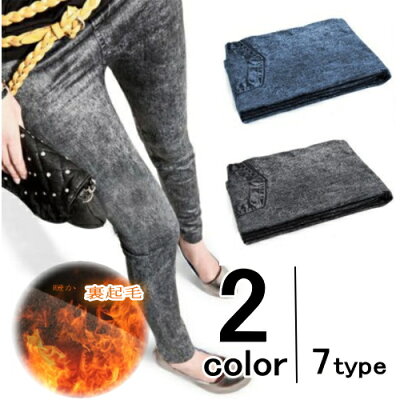 春レギンス 裏起毛 防寒パンツストレッチ 美脚 デニム風 ダメージ風 暖か 防寒 伸縮性 ウエストゴム レディース (アパレル)